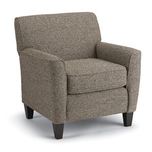 The bowed back of the Bethany club chair offers a perfect spot to sit back and be enveloped by the comfort of this playful chair. The flared legs are finished with your choice of Espresso, Riverloom or Driftwood, keeping in tune with the flirtatiousness of this chair. Choose from over 700 fabric options to make the Bethany a chair that is all your own. As an accent, it pairs nicely with many styles of furniture. The soft curves and styled pleats will leave you head over heels. Come into the store to see the latest options!