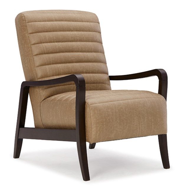 The Emorie Accent Chair has sleek lines supported by the curved wooden frame which offers an eye-catching contrast that teases the senses. The tall, solid foam back and channel tufting that accents both seat and back is what makes the Emorie unique. With 700 fabric choices, you’re sure to find a match. The wooden legs are available in three finishes: Dark Walnut, Espresso, and Riverloom. Built in the USA by fine craftsmen.