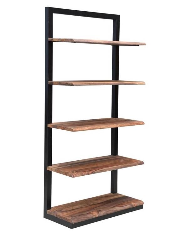 Beautiful in its simplicity, this Bookcase has an open look with an understated elegance. A tall metal framework finished in a black powder coating rises up and holds five full shelves of exotic Sheesham wood, with gently curving live edges and exquisite graining that gleams in our Brownstone Nut Brown stain. A wonderful way to display your collections, books and artwork.