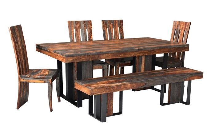 The alluring play of light and dark is found naturally in Sheesham wood, and it brings an exotic flavor to our Sierra Dining Table. Tee shaped legs form the base, which is both enhanced and reinforced by the linear dark iron work. Ready to take your dining room to the next level? Then this table is definitely for you!